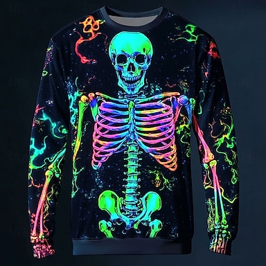 Schädel Herren Schädel Sweatshirt Punk Party Langarm Rundhals Urlaub Gelb Blau Crewneck 3D All Seasons Designer