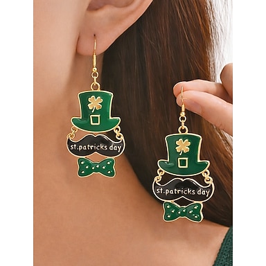 St. Patrick's Day Ohrhänger aus Metalllegierung für Damen, mit Kleeblatt- und Koboldmotiven in verschiedenen Mustern, fröhlicher, festlicher Schmuck im irischen Stil für Feiertage, Paraden und andere festliche Anlässe.