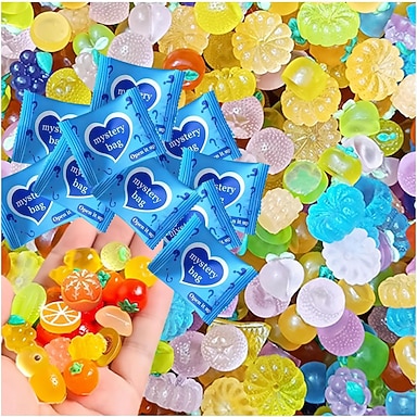 Mini-Obstset aus Kunstharz, leuchtend im Dunkeln, 50/100/200 Stück in Überraschungstüten, kleine Früchte wie Äpfel, Erdbeeren, Orangen, Weintrauben u. v. m., ideal zum Basteln, für Feengärten, als Dekoration oder zum Sammeln für Kinder und Erwachsene