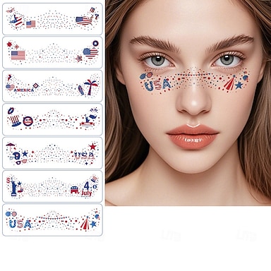 30 Stück amerikanische Unabhängigkeitstag-Sternenflaggen-Aufkleber mit Glitzer-Rosa-Motiv, vergoldete Nachtlicht-Tattoo-Aufkleber, DIY-Aufkleber für das Festival in Rot, Weiß und Blau