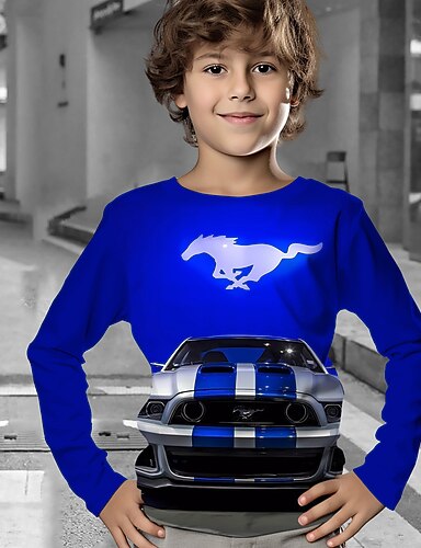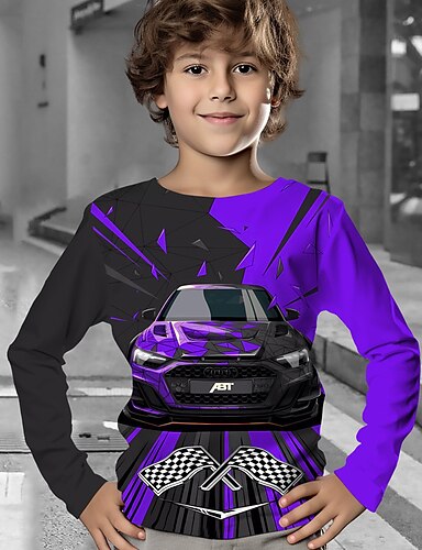 Jungen 3D Geometrisch Auto T-Shirt Langarm 3D-Druck Herbst Winter Sport Modisch Strassenmode kinderkleidung 3-12 Jahre Outdoor Casual Täglich Regular Fit