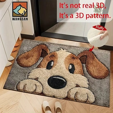 Fußmatte mit Cartoon-Motiv aus Kunstfell, strapazierfähig, für den Eingangsbereich, 2D-Flachdruck, schnelltrocknend, saugfähig, pflegeleicht, rutschfest, für Bad und Zuhause