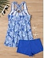 Damen Badeanzug Tankini Zweiteilig Badeanzugkleid Bademode 2 teilig Bescheidene Bademode Urlaub Strandbekleidung Blumen Druck Träger Ärmellos Badeanzüge