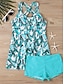Damen Badeanzug Zweiteilig Shorts Bademode Rückenfrei Urlaub Strandbekleidung Blumen Grafik U-Ausschnitt Ärmellos Badeanzüge