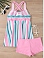 Woman's Tankini 2-teiliger Badeanzug Shorts Bauchkontrolle Hohe Taille Slim Rückenfrei Urlaub Strandbekleidung Paisley-Streifen U-Ausschnitt Ärmlos Badeanzüge