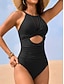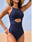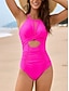 Damen Einteiler Badeanzug Schlank machender Rüschenschnitt Sexy Cutout Monokini Mesh Bauchkontrolle Hohe Taille Slim Rückenfrei Urlaub Strandbekleidung Einheitliche Farbe Halterhals Ärmellose Bademode