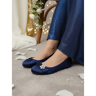 Hochzeitsschuhe für die Mutter der Braut/des Bräutigams, marineblaue Satin-Ballerinas für Damen, flache Hochzeitsschuhe mit niedrigem Absatz und Strasssteinen, bequeme Abendpumps