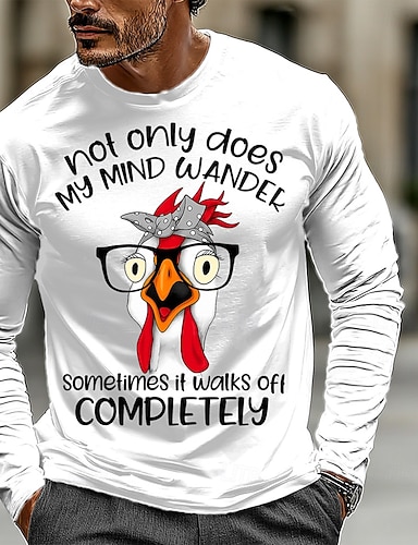 Herren Tiermotiv 3D Lustig T Shirt Langarm T-Shirt 3D-Druck Rundhalsausschnitt Hemd Mode Basic Lässig Täglich Straße Blau Weiß 1 Weiß Sommer Frühling Bekleidung S M L XL XXL XXXL