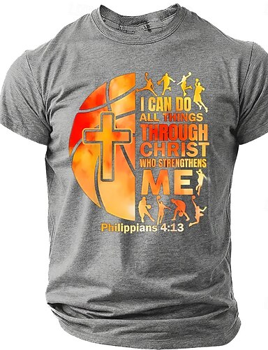 Herren Bibel Basketball Silhouette Orange Kreuz Ich kann alles durch den der mich stärkt Christus Christian Religiöses T-Shirt Grafik Casual Kurzarm Fitness Kirche Tragen Designer Kleidung Apparel