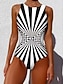 Damen Einteiler Badeanzug Schlankmachend Colorblock Monokini Bauch Kontrolle Hohe Taille Slim Rückenfrei Urlaubs Strandbekleidung Grafisch Geometrisch Rundhals Ärmellos Bademode