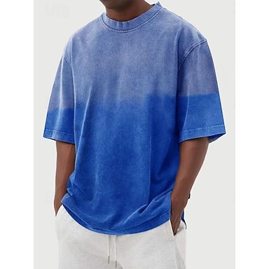 Herren Hemd aus 100 % Baumwolle in Säurewaschung T-Shirt Schweres T-Shirt Kurzarm Rundhalsausschnitt Sommer Farbverläufe Mode Designer Lässig Vintage-Stil Stückgefärbt Verblasst Lässig Täglich Outdoor