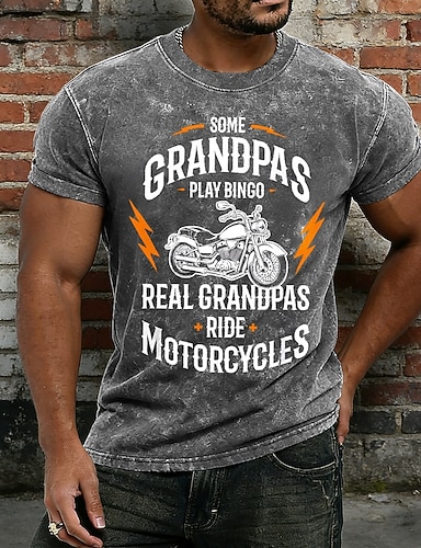Vintage-Motorrad-T-Shirt für Herren mit Acid-Wash-Print: „Echte Opas fahren Motorräder“. Lustiges Biker-Geschenk-Shirt aus Baumwoll-Polyester-Mischgewebe mit Mineralwaschung und Used-Look-Grafik.