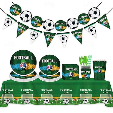 Fußball-Partyartikel für 10/20/30 Gäste, Fußball-Geschirrset mit Tellern, Servietten, Bechern, Tischdecke, Girlande, Popcorn-Eimern, Besteck, Einweg-Sportdekorationen für den Geburtstag