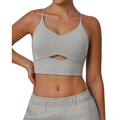 Damen Einfarbig Panzer Tennis-BH Sport-BH Ärmellos Loch Schnelltrocknend Stoßfest Feuchtigkeitsableitend Atmungsaktiv Tennis Pickleball Laufen V Ausschnitt Sport-BHs Oberteil Grau Tennisbekleidung