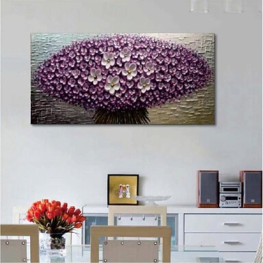 handgemaltes Ölgemälde mit Blüten und Blumen auf Leinwand, handgefertigtes abstraktes strukturiertes lila blühendes Gemälde, handgefertigtes 3D-Blumen-Acrylgemälde für Wohnzimmer, Schlafzimmer,