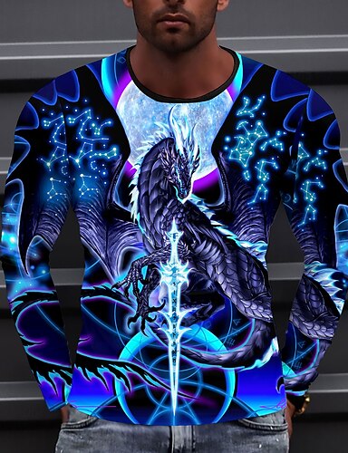 Herren Drache T Shirt Langarm T-Shirt 3D-Druck Rundhalsausschnitt Hemd Mode Übertrieben Straße Lässig Täglich Blau Sommer Frühling Bekleidung S M L XL XXL XXXL