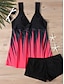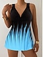 Damen Tankini 2-teilig Badeanzug Boyleg Bauchkontrolle Hohe Taille Schmal Rückenfrei Urlaubs Strandbekleidung Ombre V-Hals Ärmellose Badeanzüge