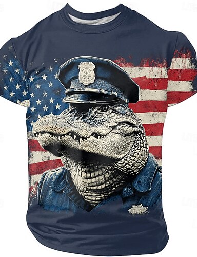 Herren Krokodil 3D USA T Shirt Kurzarm T-Shirt 3D-Druck Rundhalsausschnitt Hemd Mode Übertrieben Täglich Party Straße Lässig Schwarz Rote Blau Sommer Frühling Bekleidung S M L XL XXL XXXL