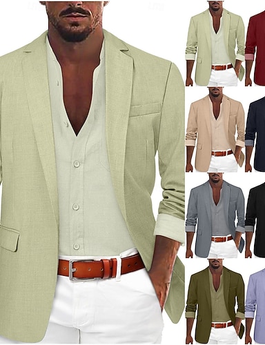 Herren Blazerjacke Notch-Kragen Mode Leicht Lässig Einfarbig Blazer Schwarz Hellgrün Rote Figurbetonter Schnitt Einreihig Ein-Knopf