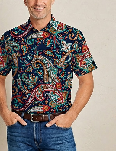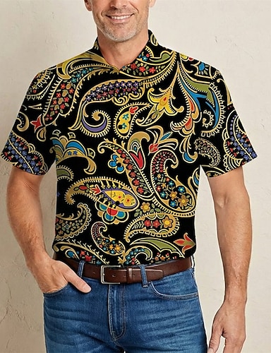 Retro Vintage 1970er Hemd Disco Blumen Paisley-Muster Kostüm Herren Alltagstauglich Pride Parade Pride-Monat Erwachsene Oberteil Ganzjahres