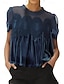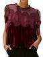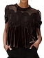 Damen Samt Bluse Netz Einfarbig Stilvoll Kurzarm Rundhalsausschnitt Normale Oberteile Täglich Ferien Ausgehen Blau Schwarz Wein Armeegrün Orange Sommer Frühling