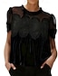 Damen Sommeroberteile Bluse Elegante Oberteile Gerafft Patchwork Netz Einfach Elegant Vintage Damen Langarm Rundhalsausschnitt Normale Oberteile Täglich Arbeit Ferien Schwarz Sommer Frühling