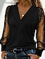Damen Hemd Elegant Satin-Top Bluse Patchwork Netz Einfach Stilvoll Langarm V Ausschnitt Normale Oberteile Täglich Ferien Ausgehen Schwarz Sommer Frühling