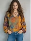 Damen Hemd Freizeithemd Paisley-Muster Vintage Stilvoll Klassisch Langarm V Ausschnitt Normale Oberteile Täglich Ferien Ausgehen Blau Frühling Herbst