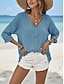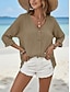 Damen Hemd Freizeithemd Strandhemd Bluse Knöpfe Einfach Stilvoll Klassisch Modern Langarm V Ausschnitt Normale Oberteile Täglich Ferien Strandhochzeit Blau Rosa Purpur Grün Khaki Sommer Frühling