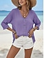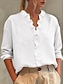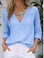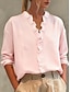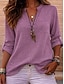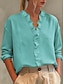 Damen Bluse Hemd aus Leinenimitat Einfarbig Stilvoll Lässig Langarm V Ausschnitt Normale Oberteile Täglich Blau Rosa Purpur Orange Frühling Herbst