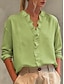 Damen Bluse Kunstbaumwollleinen Knöpfe Einfarbig Stilvoll Lässig Langarm V Ausschnitt Normale Oberteile Täglich Blau Gelb Purpur Grün Beige Sommer Frühling Herbst