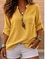 Damen Hemd Baumwoll Mischung Bluse Gerafft Einfach Basic Modern Lässig Dreiviertelarm V Ausschnitt Normale Oberteile Täglich Ferien Ausgehen Weiß Rosa Leicht Blau Sommer