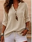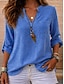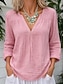 Damen Bluse Kunstbaumwollleinen Spitze Knöpfe Einfarbig Stilvoll Lässig Dreiviertelarm V Ausschnitt Normale Oberteile Täglich Blau Schwarz Weiß Rosa Orange Frühling Herbst