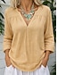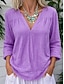 Damenhemd Button-Down-Bluse Basisdruck 3/4-Länge Ärmel Reguläre Oberteile V-Ausschnitt Leger Pink Blau Lila Grün Khaki