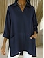 Damen Bluse Kunstbaumwollleinen Tasche Knöpfe Einfarbig Stilvoll Lässig Dreiviertelarm V Ausschnitt Lange Oberteile Täglich Blau Weiß Gelb Rosa Rote Sommer Frühling Herbst