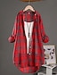 Damen Spitzenbluse Shacket Bluse Spitze Druck Fließende Tunika Karomuster Mode Langarm Hemdkragen Lange Oberteile Lässig Schwarz Rote Grün Frühling & Herbst