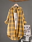 Damen Hemd Baumwoll-Leinen-Hemden Bluse Knöpfe Karomuster Elegant Vintage Stilvoll Langarm Hemdkragen Lange Oberteile Täglich Ferien Ausgehen Gelb Rote Grün Sommer Frühling Herbst