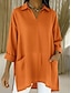 Damen Bluse Hemd aus Leinenimitat Knöpfe Einfarbig Täglich Lässig Dreiviertelarm V Ausschnitt Lange Oberteile Täglich Strand Schwarz Weiß Rote Orange Grün Sommer Frühling Herbst