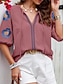 Damen Popover-Hemd Sommerhemd Freizeithemd Bluse Bestickt Blumen Urlaub Stilvoll Lässig Halbarm V Ausschnitt Normale Oberteile Täglich Strand Ferien Blau Rosa Marineblau Aprikose Sommer Frühling