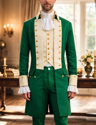 Rokoko Renaissance Urlaubskleid Outfits Prinz Alexander Hamilton Edelmann Kostüm Herren königlich Halloween Karneval Maskerade Musiktheater Karneval von Venedig Erwachsene Mantel Weste Bluse