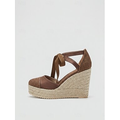 Braune Espadrille-Sandalen mit Keilabsatz und Schleifen an den Knöcheln – perfekt für den Urlaub &Abendschuhe fürs Resort