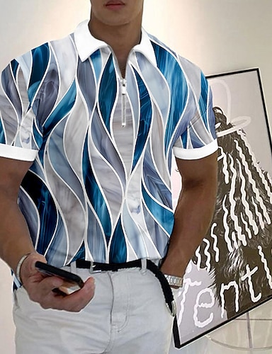 Herren Gestreift Geometrische Muster Hemd Knopfhemd Kurzarm Abstrakt Brautkleider schlicht Täglich Festtage Sommer Umlegekragen Knopf hoch 3D-Druck Blau