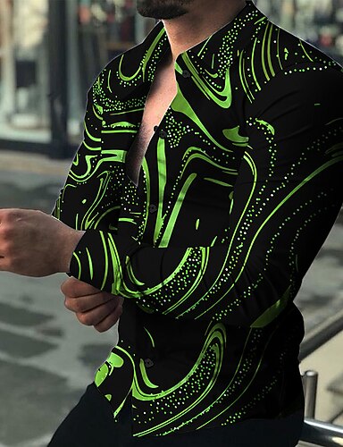 Herren Geometrische Muster Geometrie Hemd Knopfhemd Langarm Modisch Designer Brautkleider schlicht Outdoor Urlaub Täglich Frühling Sommer Ständer 3D-Druck Button-Down Schwarz Weiß Rosa Dunkelgrün Grün