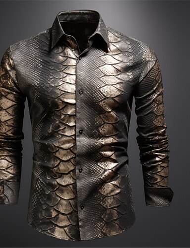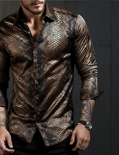 Herren Schlangenhaut Muster Hemd Knopfhemd Kurzarm Brautkleider schlicht Dunkel Urlaub Täglich Abendgesellschaft Sommer Umlegekragen Hemden mit Kragen Knopf Bedruckt Schwarz Braun