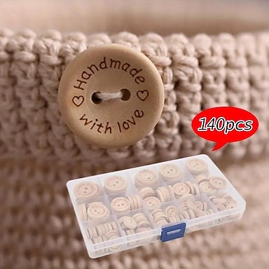 140 Stück Nähknöpfe aus Holz, gemischtes Knopfset in mehreren Größen mit 2-Loch-Design, dekorative und funktionale Knöpfe für Kleidung, Kunsthandwerk und DIY-Projekte