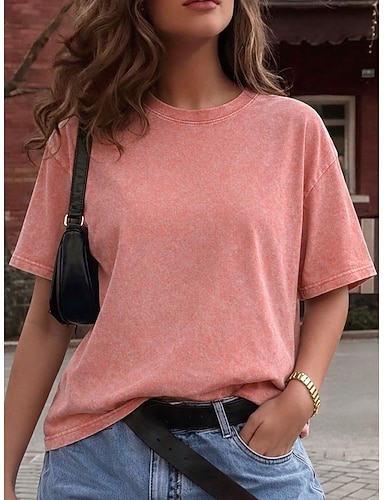 Damen-T-Shirt aus 100 % Baumwolle im Vintage-Look, modisch, stylisch, klassisch, Kurzarm, Rundhalsausschnitt, lang, lässig, für Strand, Sommer, Frühling