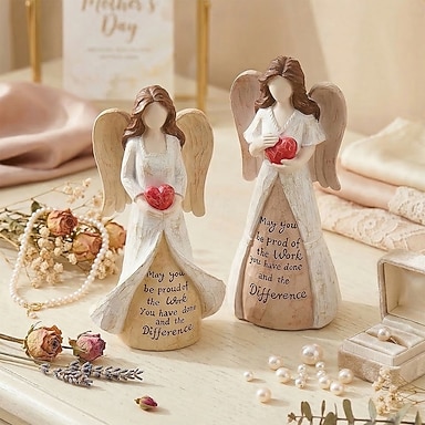 Engelsfigur mit rotem Herz zum Muttertag, dekorative Engelsskulptur aus Kunstharz, Tischdekoration für Eingangsbereich, Arbeitszimmer oder Schreibtisch, Geschenk zum Muttertag für Mama