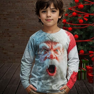 Weihnachten Jungen 3D Grafik Weihnachtsmann T-Shirt Langarm Frühling Herbst Mode Basic Kinder 4-12 Jahre Rundhalsausschnitt Outdoor Lässig Täglich Normale Passform