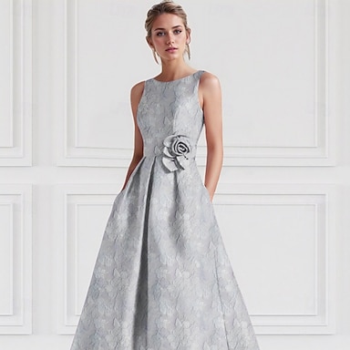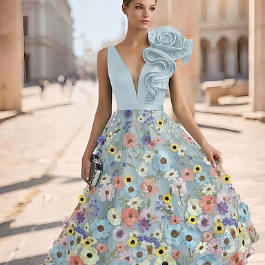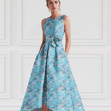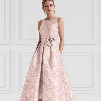 A-Linie Knöchellänge Cocktailkleider Partykleider Elegant Vintage Ärmellos Rundhalsausschnitt Hochzeit Formell Nylon mit Blumenmuster Tasche