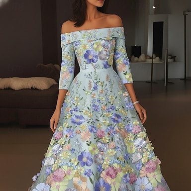 A-Linie Bodenlang Tee-Länge Cocktailkleider Abendkleid Partykleider Elegant Glitzernd Promi-Stil Kurzarm Schulterfrei Gartenparty Hochzeit Satin Stretch Satin mit Stickerei Applikationen